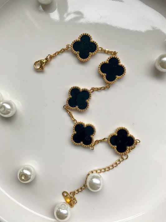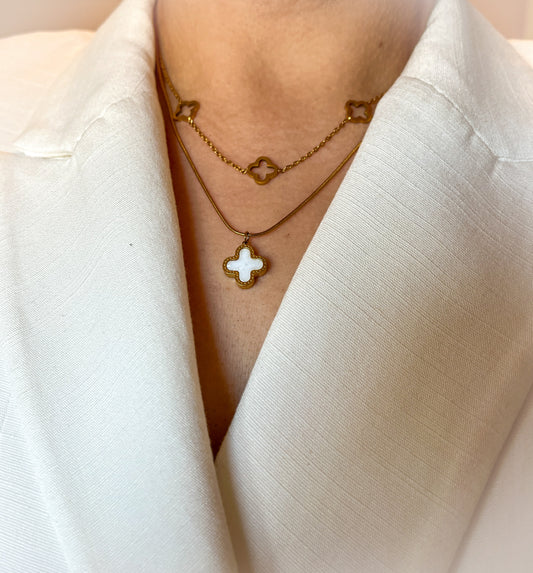 Kleeblatt Halskette- Doppelseitig, schwarz/weiß