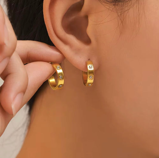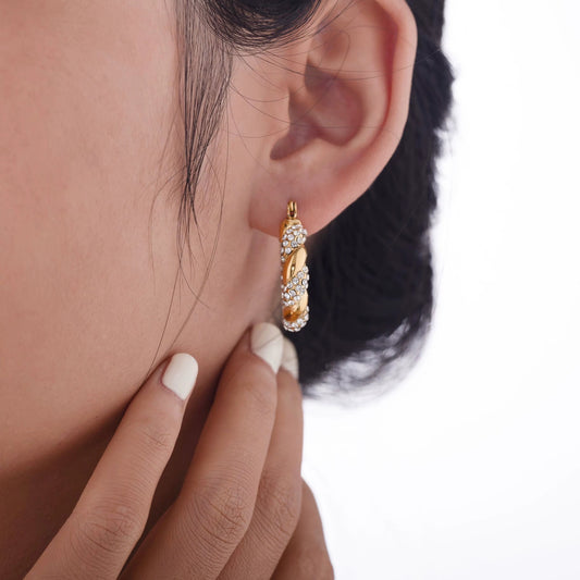 Funkelnde Creole mit Steinen, gold Edelstahl