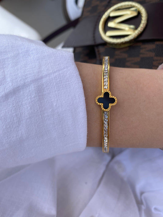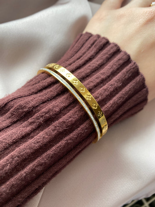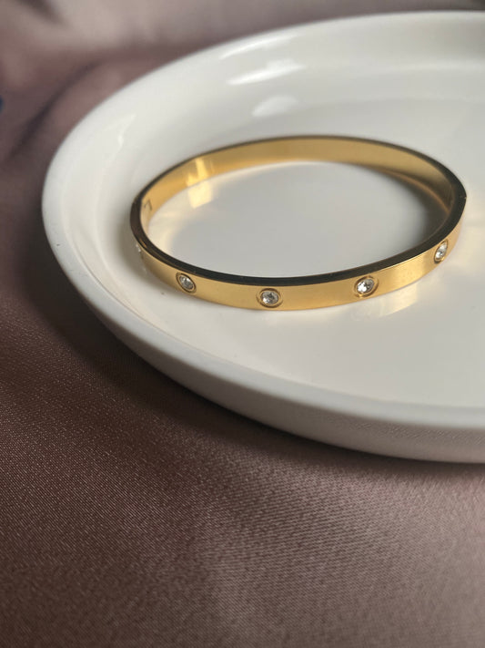 Goldener Edelstahl Armreif mit Zirkonia - Leyla